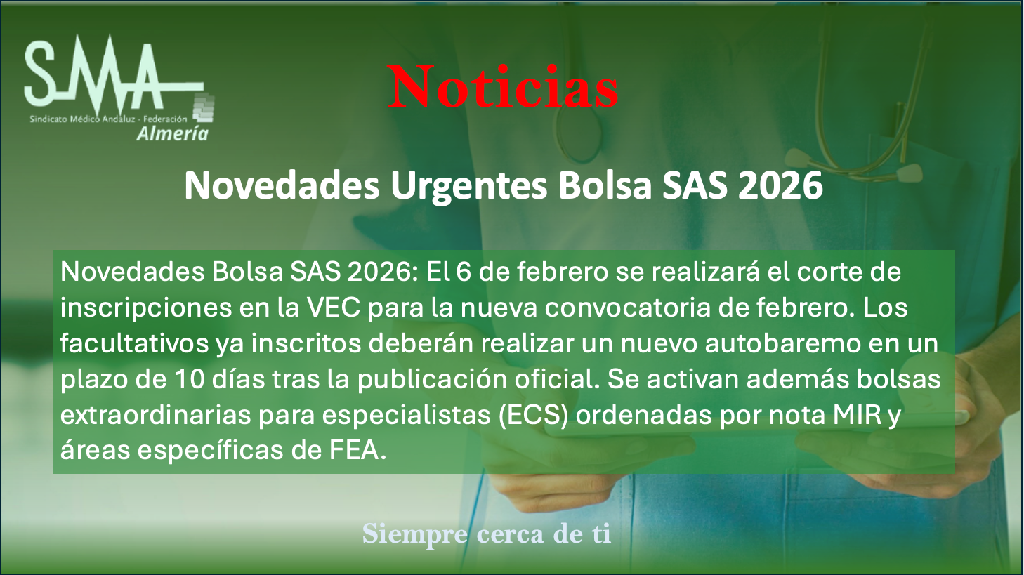 2/02/2026 | Atención Hospitalaria, Atención Primaria, BOLSA SAS, Colectivos, Cuerpo A4, Otros Facultativos